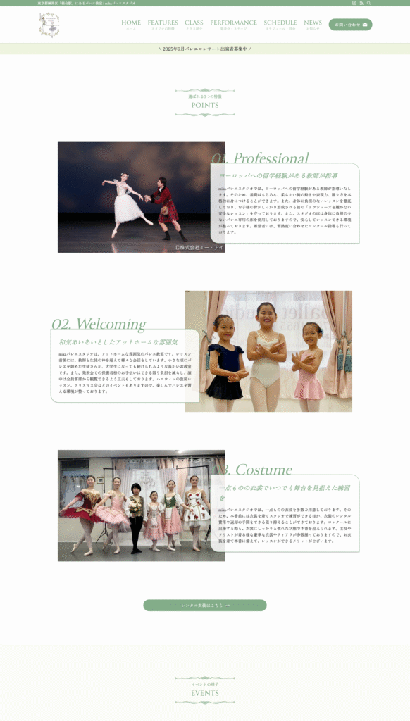 東京都練馬区のバレエ教室「mikaバレエスタジオ」様のホームページをリニューアル制作いたしました。