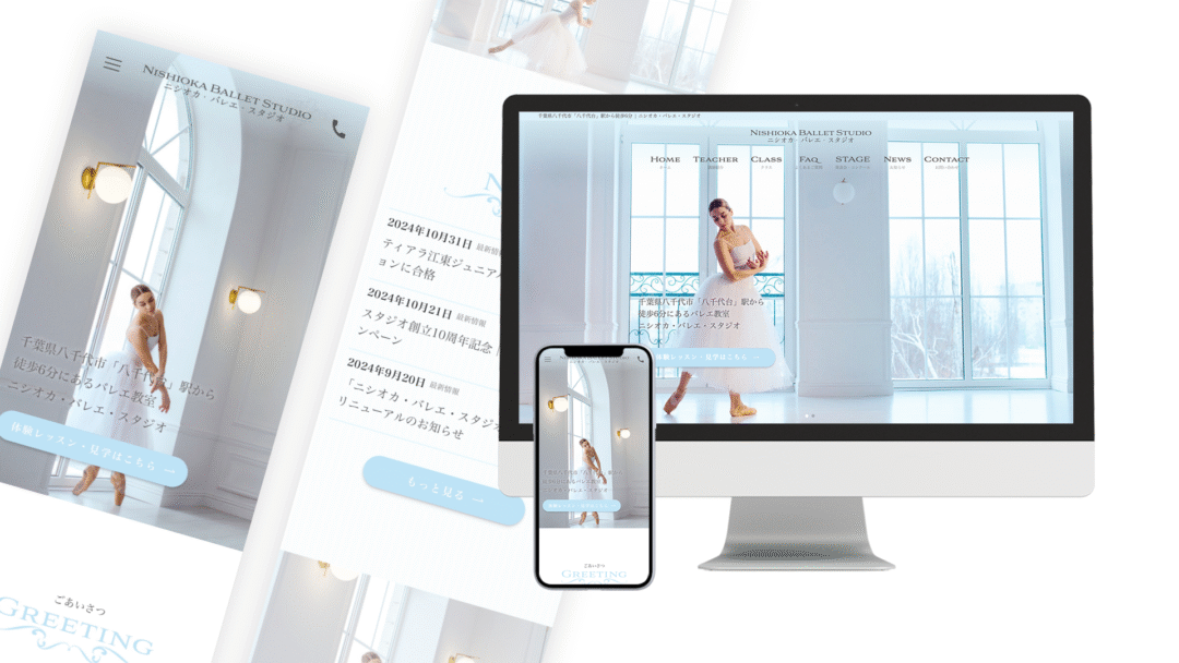 ニシオカ・バレエ・スタジオ様(千葉県) 投稿日 2025年1月20日 更新日 2025年12月30日 著者 yayoi カテゴリー ホームページ制作 カテゴリー 制作実績 \ 千葉県八千代市のバレエ教室 / ホームページはこちら 「ニシオカ・バレエ・スタジオ」様のホームページを制作させていただきました。ご依頼いただきありがとうございました。 [blog_parts id="2400"] この記事を書いた人 yayoi 記事一覧 ウェブサイト