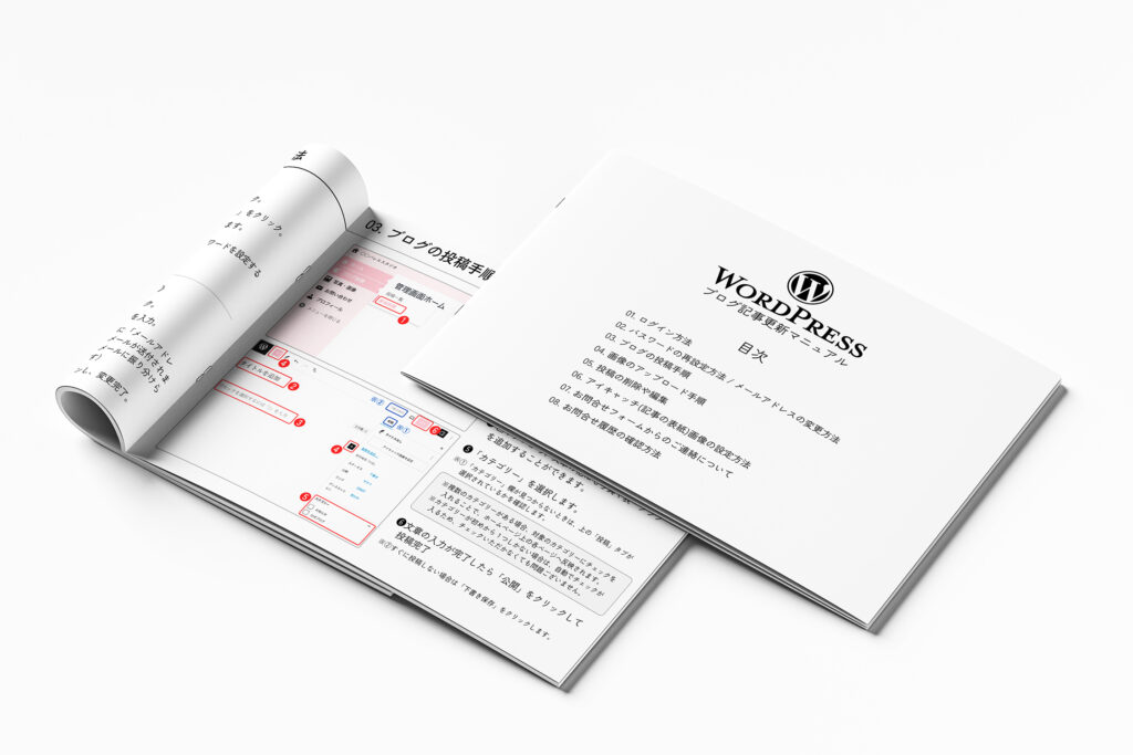 ホームページを定期的に更新することは、SEO(検索順位を上げるための対策)の観点からもとても大切です。先生ご自身でもお知らせやブログを更新していただけるよう「専用マニュアル(PDF)」をお渡ししております。アフターサポートにて、情報の修正等はもちろん、お知らせの更新代行(月4回まで)も承っております。